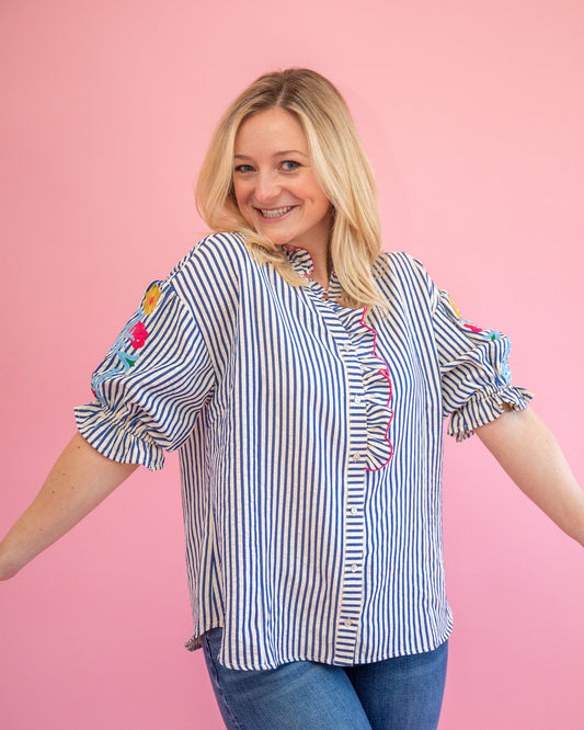 Shelby Blue Stripe Floral Top