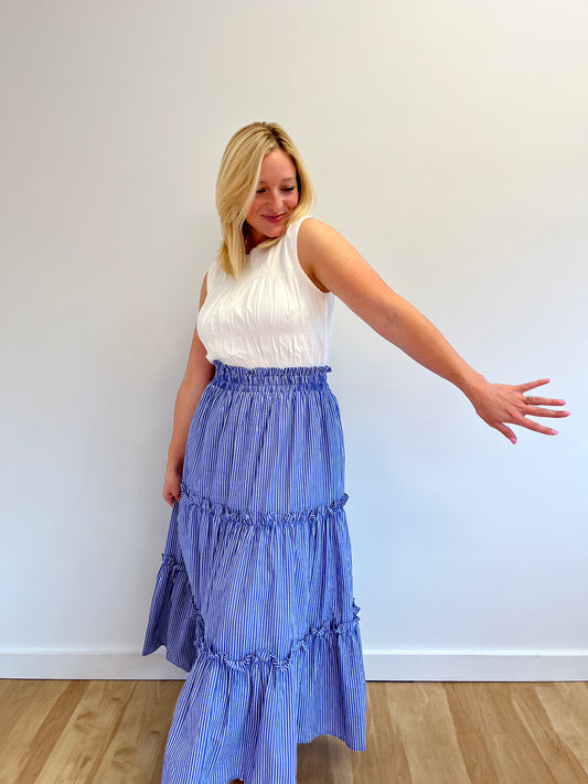 Emery Blue and White Stripe Skirt