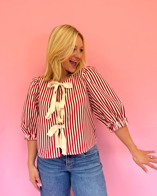 Saylor Red Stripe Bow Front Top