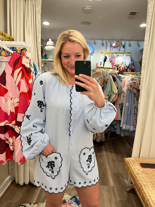 Dara Stripe Embroidered Romper