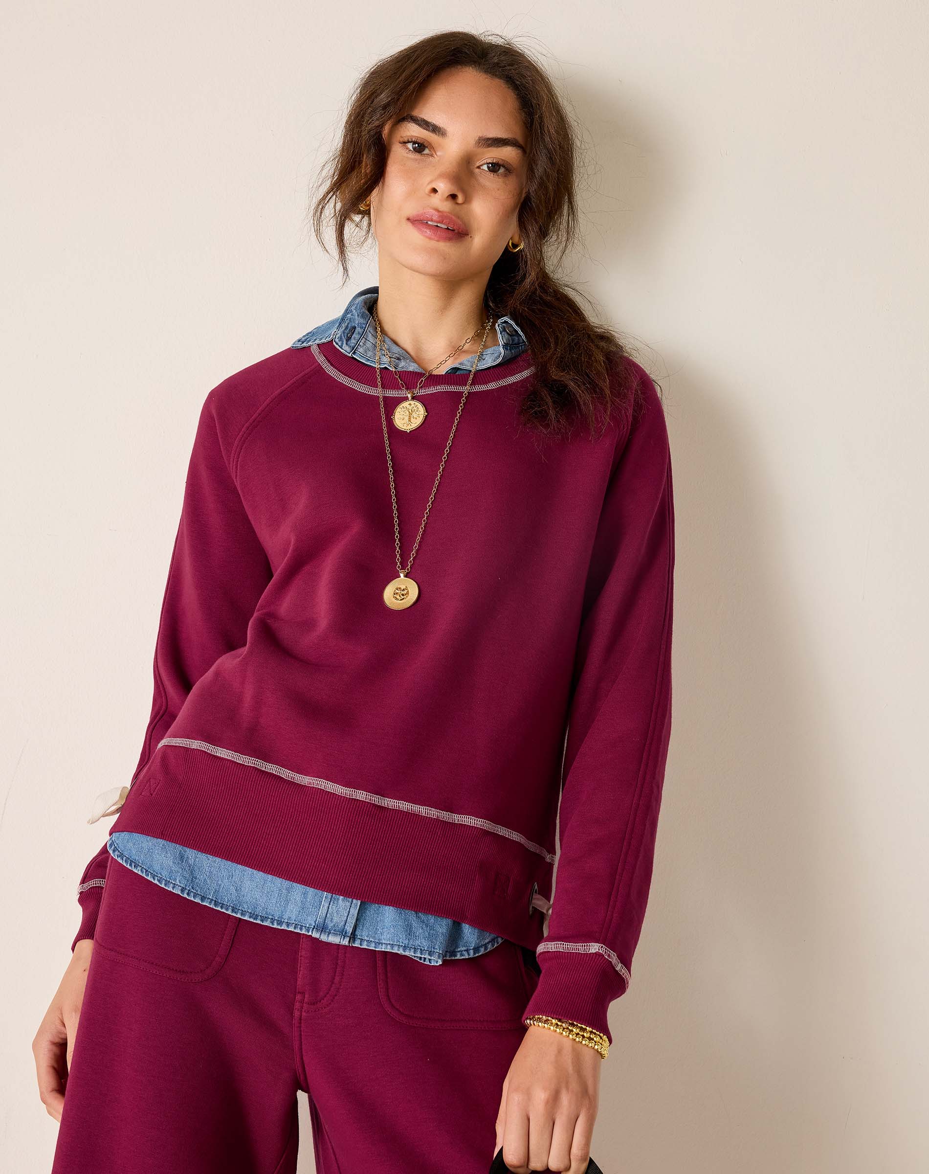 This is the elevated crewneck you've been missing. With stitch detailing and twill bows at each side, this ultra-soft French terry top is the comfort of your favorite sweatshirt with a stylish twist.